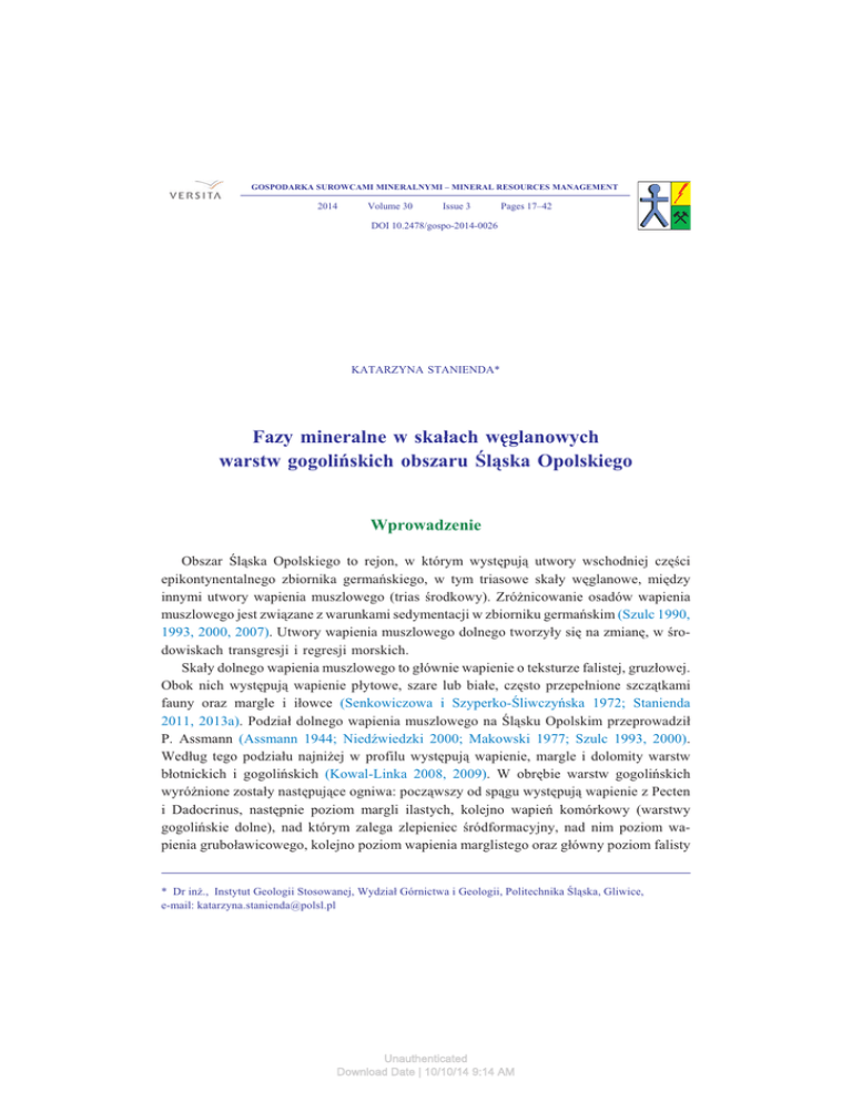 Fazy Mineralne W Skałach Wêglanowych Warstw Gogoliñskich