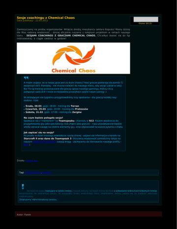 Sesje coachingu z Chemical Chaos Data publikacji : 22.03.2012 Ocena: 5/5 (2) Zamieszczamy na prośbę organizatorów: Witajcie drodzy mieszkanćy sektora Koprulu! Mamy dzisiaj dla Was radosną wiadomość - dzisiaj oficjalnie ruszamy z kolejnym projektem w ramach naszego klanu - SESJAMI COACHINGU Z GRACZAMI CHEMICAL CHAOS. Chciałbyś dostać się do ligi mistrzowskiej, a ciągle siedzisz w goldzie? A może czujesz, że w twojej grze jest za dużo chaosu? Nasi gracze postarają się pomóc Ci zwiększyć skill. Pamiętaj - nie musisz należeć do naszego klanu, aby wziąć udział w sesji. Ba! To są treningi przeznaczone dla graczy spoza naszego gamingu, którzy chcą polepszyć swój skill i może w niedalekiej przyszłości zasilić nasze szeregi :) W zbliżającym sie tygodniu przygotowaliśmy trzy spotkania - dla graczy każdej rasy osobno. I tak: ● ● ● Środa, 28.03, godz. 18:00 - trening dla Terran Czwartek, 29.03, godz. 20:00 - trening dla Protossów Sobota, 31.03, godz. 17:00 - trening dla Zergów Na czym będzie polegała sesja? Spotkacie się z "mentorem" na Teamspeaku, channelu w SC2. Razem wejdziecie do przygotowanej gry jako spectatorzy (lub chętni jako gracze) - nasz przedstawiciel będzie wtedy zwracał uwagę na istotne elementy gry, oraz odpowiadał na wasze pytania z chata. Jak zapisać się na sesję? Po prostu w dzień treningu odwiedzcie naszą stronę - pojawi się informacja o kanale na Starcraft II oraz dane do Teamspeak 3. Stosowną wiadomość zamieścimy także na naszym profilu na Facebooku (swoją drogą - zachęcamy do like'owania naszego profilu Klik! ) Źródło: cchaos.net Tagi: Chemical Chaos, coaching Uprasza się osoby kopiujące w całości newsy z naszej witryny na swoje strony lub fora o wstawianie widocznych klikalnych linków, bezpośrednio do pobranego tekstu. W przypadku braku widocznego linku, skopiowanie tekstu uważa się za kradzież własności intelektualnej. Dziękujemy: Administratorzy serwisu. Autor: Fanek Data publikacji : 22.03.2012 Liczba wyświetleń tekstu: 1936 Komentarz (7) dodaj komentarz Bardzo fajnie że taka akcja została zorganizowana. Widzę klan chce sobie wyrobić Fame na scenie :D gratuluję pomysłu. Jak tylko będę miał kompa, to pojawię się poćwiczyć, bo mechanika u mnie kuleje momentami.~used2venom 2012/03/22 15:26 Wszystko fajnie, kolorowo, ale jakoś nie mam przekonania do grupy, która pisze o "zwiększaniu skilla" - zamiast "zwiększeniu umiejętności", "channelu w SC2" - zamiast "kanale SC2" albo "dla graczy spoza naszego gamingu" - co już w ogóle nie ma sensu. Chęci swoją drogą panowie, ale taka mała rada z mojej strony, żeby popracować nad wizerunkiem intelektualnym swojej grupy. Tak czy owak, życzę powodzenia, ponieważ akcja jest godna pochwały ;)~WarDice 2012/03/22 16:03 Pomysl bardzo dobry, wiele "slabszych" graczy moze na tym skorzystac. Panie WarDice istnieje cos takiego jak slogan w esporcie, ktorym od zawsze posluguja sie gracze. Sa to slowa zaczerpniete z angielskiego ale niestety niewiem co tak bardzo Pana razi w oczy skoro na kazdym kanale, z kazdym graczem porozumiewamy sie za pomoca tych slow. Tresc news'a (o news'a tez sie Pan przyczepi) jest napisana w luznej formie, tak samo jak gra sie dla przyjemnosci i rozrywki a nie dla jakiejs formalnosci. Bardziej chodzi o patriotyzm czy o to zeby sie do czegos przyczepic z tzw. "polaczkowatosci"?. Mnie osobiscie nie razi to w oczy gdyz sam sie posluguje takim jezykiem w grze, a na codzien nie zapozyczam slow z angielskiego jezeli jest to mozliwe. Uwazam, ze sama chec zorganizowania czegos powinna byc doceniona i tu sie zgadzam z powyzszym postem ale reszte mozna bylo sobie oszczedzic. Pozdrawiam~saintsLeX 2012/03/22 17:56 Kilkanaście karakanów ze swoim karapaksem zergów plus dwa świetnie sobie radzi z czołgami oblężniczymi, które w trybie oblężniczym zadają im dodatkowe obrażenia, jako celom opancerzonym. Trzeba pamiętać, że mimo piękna naszego języka niektóre wyrazy brzmią dużo lepiej w wersjach angielskich, a ich używanie staję się czystą rutyną, ale także dobrym przygotowaniem do rozmów z innym zagranicznymi graczami, choćby podczas turniejów. Pozdrawiam :)~Dertirius1 2012/03/22 21:40 @saintsLeX Zanim zaczniesz pisać post, w którym udowadniasz mi, tylko że nie rozumiałeś moich intencji radzę wziąć włączyć np: Wikipedię i sprawdzić co znaczy słowo "Slogan", a potem palnąć się w głowę i sprawdzić słowo "Slang"......... Slang nie jest czymś złym, chodzi o to jak się prezentujemy wychodząc poza swoje kanały TS'a, etc, itd. chcąc zachęcić innych ludzi do współpracy z nami. Poza tym w którymś zdaniu użyty slang powoduje ze zdanie nie ma sensu logicznego. To od nas piszących posty zależy czy inni odbierają nas jako ludzi inteligentnych, czy też głupich. Wiadomość zaprezentowana powyżej daje mi do zrozumienia ze mam do czynienia z ludzi nie biorącymi pewnych rzeczy poważnie, a co za tym idzie nie skłania mnie do zainteresowania się ich ofertą.~WarDice 2012/03/24 16:22 @WarDice Piszesz jak typowy frustrat nieszczęśliwy z jakości swojego życia, pogrążony w schematach społecznych do tego kryjący się pod straszną maską "intelektualisty". Ponad to Twoja wypowiedź jawnie sugeruje jak bardzo zależny jesteś od swojego ego (jakie jest wrogiem rozwoju osobistego) oraz fakt że umysł ma całkowitą kontrolę nad esencją Twojej istoty (nie oczekuje żebyś zrozumiał nawet w najmniejszym stopniu to co przeczytałeś przed chwilą) W każdym bądź razie czytając dalej i dalej uświadamiasz sobie TERAZ że czas zmienić swoje życie na lepsze, nie czepiać się pierdół jak "wujek dobra rada" i zastanowić nad kwestią olbrzymich braków wiedzy na temat tego jak wygląda świat i co kryje się w jego prawdziwym mechanizmie zarówno kontroli, manipulacji itp. Spodziewam się że zaraz nasmarujesz jakieś "mądrości" bo przecież znowu EGO Ci każe. Zupe