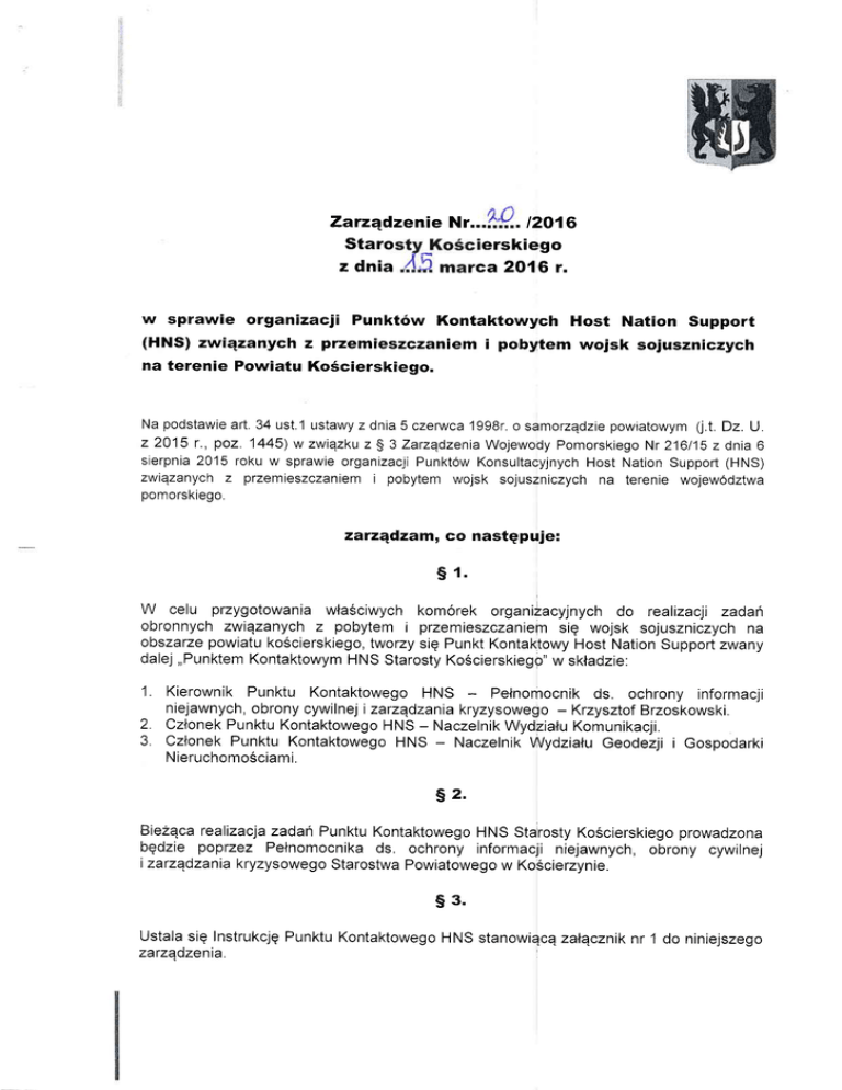 obszarze powiatu ko5cierskiego, tworzy siq Punkt Kontaktowy Host Nation Support zwany