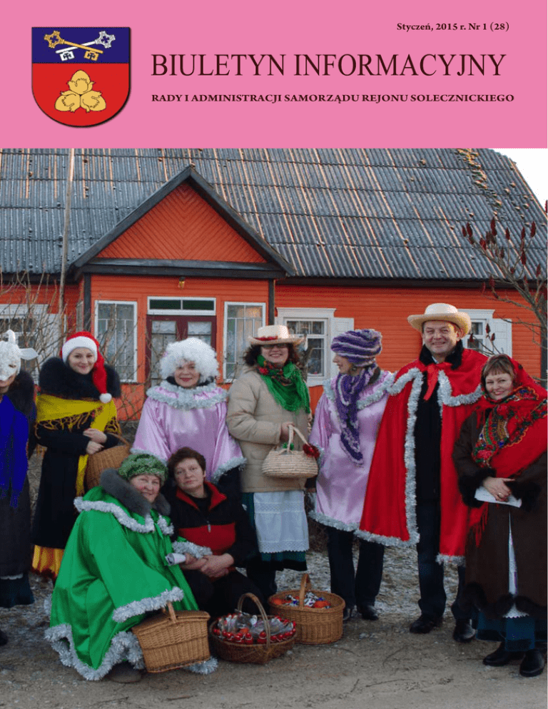 Styczeń, 2015 r. Nr 1 (28) Styczeń, 2015 r. Nr 1 (28) BIULETYN INFORMACYJNY RADY I ADMINISTRACJI SAMORZĄDU REJONU SOLECZNICKIEGO 1 BIULETYN INFORMACYJNY Rady1i marca administracji rejonuodbędą solecznickiego W dniu 2015 samorządu roku na Litwie się wybory do rad samorządowych oraz – po raz pierwszy w historii Niepodległej Litwy – bezpośrednie wybory merów samorządów. Podczas głosowania oddamy swoje głosy za partię i pięciu jej kandydatów, jak też przyszłego mera samorządu rejonu solecznickiego. 1 marca w Solecznickim Okręgu Wyborczym startuje 6 partii politycznych, o mandat radnego Rady samorządu rejonu solecznickiego będzie ubiegało się 135 kandydatów, 4 pretendentów – o stanowisko mera rejonu. Wczesne głosowanie odbędzie się 25 i 26 lutego od godz. 8.00 do godz. 20.00 w sali administracji samorządu rejonu solecznickiego (ul. Wileńska 49). Powtórne głosowanie – 11 i 12 marca. Zagłosować przed datą wyborów ma prawo każdy posiadający prawo głosu obywatel RL, który w dniu wyborów nie może przybyć do lokalu wyborczego. Głosowanie w domu odbędzie się 27 i 28 lutego od godz. 8.00 do godz. 20.00 (powtórne głosowanie – 13 i 14 marca). Wyborca, posiadający prawo głosowania w domu, musi wypełnić wniosek o głosowanie w domu i w terminie złożyć go do komisji wyborczej. W dniu wyborów w lokalach wyborczych niezbędne jest posiadanie dokumentu tożsamości oraz karty wyborczej. Druga tura wyborów merów przewidziana jest na 15 marca. Odbędzie się ona w wypadku, jeżeli żaden z kandydatów nie nabierze niezbędnej większości głosów. W takim razie o stanowisko mera będzie ubiegało się dwóch kandydatów z największą liczbą głosów w pierwszej turze wyborów. Przygotowane według informacji Głównej Komisji Wyborczej ISSN 1822 - 122X BIULETYN INFORMACYJNY RADY I ADMINISTRACJI SAMORZĄDU REJONU SOLECZNICKIEGO 2 Nr 1 (28), styczeń 2015 r., ukazuje się nieperiodycznie. Nakład 5000 egz. Wydawca: Samorząd Rejonu Solecznickiego Adres: LT-17116, Soleczniki, ul. Wileńska 49, tel. (8-380) 51 233, faks (8-380) 51 244 www.salcininkai.lt Redaktor wydania: Irena Kołosowska, tel. (8-380) 30166 Opracowanie graficzne: Inesa Suchocka Drukarnia:„Standartų spaustuvė”, ul. Dariaus ir Girėno 39, Wilno www.standart.lt Redakcja nie zwraca tekstów niezamówionych oraz zastrzega sobie prawo ich skracania i redagowania oraz zmiany tytułów. Przedruk za zgodą redakcji. Styczeń, 2015 r. Nr 1 (28) 1 MARCA 2015 ROKU – WYBORY DO RAD SAMORZĄDOWYCH ORAZ BEZPOŚREDNIE WYBORY MERÓW Szanowni mieszkańcy rejonu solecznickiego! Już niedługo będziemy mieć realną możliwość wpływu na przyszłość naszego rejonu w kolejnej kadencji władz samorządowych 2015-2019. Wybory władz lokalnych są istotnym elementem demokracji w naszym kraju. Wspólnie wybierzemy ludzi, od których będzie zależeć tempo rozwoju rejonu, jakość zarządzania naszym wspólnym majątkiem, realna sprawność pozyskiwania środków finansowych z Unii Europejskiej i innych instytucji zewnętrznych. Wspólnie zdecydujemy, kto będzie reprezentował nasze interesy i racje w Radzie samorządu. Po raz pierwszy w historii Niepodległej Litwy, 1 marca 2015 r. w wyborach bezpośrednich wybierzemy mera rejonu. Z pewnością większość jest już od dłuższego czasu zdecydowana. Dla jednych podstawą wyboru jest określona partia polityczna, dla innych kwestią podstawową jest nazwisko. Mieszkamy w rejonie, gdzie w większości choćby pobieżnie się znamy. Przez ostatnie dwadzieścia lat samorządności mogliśmy poznać setki osób w działaniu. Wielu z nich znajdujemy na tegorocznych listach wyborczych, wielu kojarzymy z inicjatyw w miejscach pracy bądź z aktywności społecznej w organizacjach pozarządowych. Są też osoby, które do tej pory nie wyróżniły się znacząco w działalności społecznej. Pozostaje tylko rada, by ten wybór bardzo dokładnie przemyśleć. Rola samorządowa jest bardzo trudna i odpowiedzialna. Dokonania ostatnich lat wskazują na bardzo wyraźny postęp inwestycyjny. Rozwój rejonu w takiej skali i zakresie nie byłby możliwy bez zaufania mieszkańców. Wyborcy wskazują zawsze tych, którzy sprawdzają się w działaniu, a nie poprzestają na obietnicach. Przyszłość rejonu solecznickiego zależy od Waszego wyboru, od tego czy wskażą Państwo na kontynuację pomyślnego, dynamicznego i efektywnego kierunku rozwoju. Realne, namacalne rezultaty, a nie mgliste obietnice są gwarancją naszego wspólnego sukcesu. Mając na uwadze, że wszyscy razem tworzymy samorząd, życzymy sobie i Państwu zrozumienia oraz umiejętności podejmowania ważnych decyzji, które zadecydują o losie naszego rejonu i przyszłości jego mieszkańców. Do spotkania przy urnach wyborczych w niedzielę, 1 marca 2015 roku! 3 BIULETYN INFORMACYJNY Rady i administracji samorządu rejonu solecznickiego Projekt samorządu – najlepszy! Uporządkowanie terenu szpitala solecznickiego i zbudowanie infrastruktury dzielnicy za szpitalem to najlepszy projekt zrealizowany w latach 2007-2013 w Litwie Południowej. Zrealizowany przez samorząd rejonu solecznickiego projekt „Uporządkowanie terenu szpitala w Solecznikach i zbudowania infrastruktury dzielnicy, ulokowanej za szpitalem" uznano za najlepszy projekt w Litwie Południowej, urzeczywistniony w ramach działania „Rozwój terenów problematycznych" w latach 2007-2013. Ogłoszenie zwycięskich projektów odbyło się 5 grudnia podczas uroczystości w rejonie koszedarskim. Wybrane zostały najlepsze projekty zrealizowane w ramach działań inwestycyjnych administrowanych przez Ministerstwo Spraw Wewnętrznych w latach 2007-2013. - To cieszy, że realizowane w rejonie solecznickim projekty są udane i dobrze oceniane w kraju. Najważniejszym jednak aspektem tych projektów jest to, że zmieniają one oblicze rejonu, są korzystne dla społeczeństwa, mają pozytywny wpływ na rozwój rejonu i pozyski