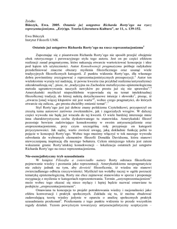 Ostatnie już ustępstwo Richarda Rorty`ego na rzecz