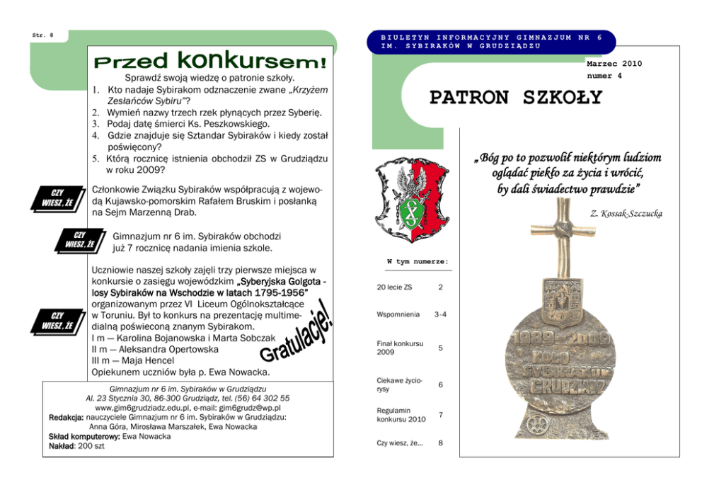 Biuletyn nr 4 - Gimnazjum nr 6 im. Sybiraków w Grudziądzu