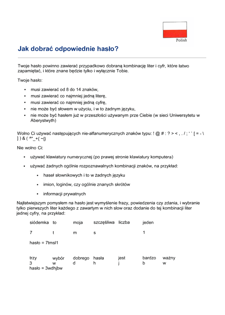 Twoje haslo powinno zawierac przypadkowo dobranq kombinacj� liter i cyfr, kt6re latwo