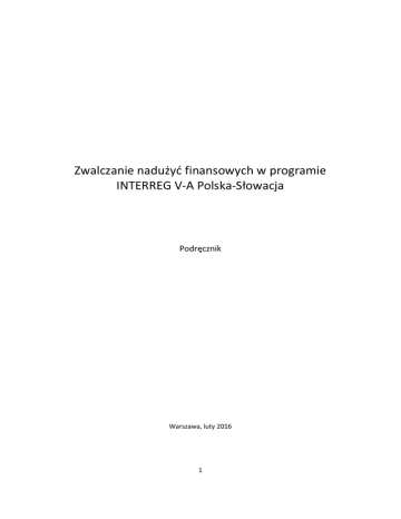 Zwalczanie nadużyć finansowych w programie INTERREG V-A Polska-Słowacja Podręcznik Warszawa, luty 2016 1 Spis treści 1. Podstawa prawna ........................................................................................................................ 3 2. Słownik pojęć i skrótów ............................................................................................................... 4 3. Zakres i cel Podręcznika............................................................................................................... 6 4. Cykl zwalczania nadużyć finansowych......................................................................................... 7 4.1. Prewencja ................................................................................................................................ 7 4.1.1. Kultura etyki .................................................................................................................... 8 4.1.2. Polityka, obowiązki, szkolenia, mechanizmy raportowania .......................................... 10 4.1.3. Kontrola wewnętrzna .................................................................................................... 11 4.1.4. Analiza ryzyka nadużyć finansowych ............................................................................. 13 4.1.5. Zapobieganie konfliktowi interesów ............................................................................. 16 5. Wykrywanie nadużyć finansowych ........................................................................................... 18 5.1. System kontroli...................................................................................................................... 19 5.2. Mechanizmy wspomagające system kontroli ....................................................................... 20 5.3. Analiza dostępnych danych ................................................................................................... 21 6. Korygowanie .............................................................................................................................. 22 7. Przekazywanie spraw do organów ścigania .............................................................................. 23 7.1. Źródła informacji o nadużyciach............................................................................................ 23 7.2. Ścieżka postępowania z podejrzeniami nadużyć pochodzącymi z poszczególnych źródeł ... 24 7.2.1. Informacje przekazane przez pracowników .................................................................. 24 7.2.2. Informacje pozyskane od organów ścigania.................................................................. 25 7.2.3. Informacje pozyskane z innych źródeł........................................................................... 26 2 1. Podstawa prawna Uregulowania zawarte w niniejszym Podręczniku wynikają w szczególności z ustawodawstwa unijnego oraz krajowego, m.in. z: 1. Traktatu o funkcjonowaniu Unii Europejskiej (Rozdział 6: Zwalczanie nadużyć finansowych) Dz. Urz. UE z 2010 r. C 83 z dnia 30 marca 2010 r. (art 325); 2. Rozporządzenia Parlamentu Europejskiego i Rady (UE) nr 1303/2013 z dnia 17 grudnia 2013 r. ustanawiające wspólne przepisy dotyczące Europejskiego Funduszu Rozwoju Regionalnego, Europejskiego Funduszu Społecznego, Funduszu Spójności, Europejskiego Funduszu Rolnego na rzecz Rozwoju Obszarów Wiejskich oraz Europejskiego Funduszu Morskiego i Rybackiego oraz ustanawiające przepisy ogólne dotyczące Europejskiego Funduszu Rozwoju Regionalnego, Europejskiego Funduszu Społecznego, Funduszu Spójności i Europejskiego Funduszu Morskiego i Rybackiego oraz uchylające rozporządzenie Rady (WE) nr 1083/2006 (Dz. Urz. UE L 347 z 20.12.2013, str. 320 ze zm.), zwane dalej rozporządzeniem ogólnym; 3. Rozporządzenia Parlamentu Europejskiego i Rady (UE) nr 1299/2013 z dnia 17 grudnia 2013 w sprawie przepisów szczegółowych dotyczących wsparcia z Europejskiego Funduszu Rozwoju Regionalnego w ramach celu „Europejska współpraca terytorialna”, zwane dalej rozporządzeniem EWT; 4. Rozporządzenia Parlamentu Europejskiego i Rady (UE, EURATOM) nr 966/2012 z dnia 25.10.2012 r. w sprawie zasad finansowych mających zastosowanie do budżetu ogólnego Unii oraz uchylające rozporządzenie Rady (WE, Euratom) nr 1605/2002 (Dz. Urz. UE L 298 z 26.10.2012 r., str. 1 ze zm.), zwane dalej rozporządzeniem finansowym; 5. Rozporządzenie delegowane Komisji (UE) nr 1268/2012 z dnia 29 października 2012 r. w sprawie zasad stosowania rozporządzenia Parlamentu Europejskiego i Rady (UE, Euratom) nr 966/2012 w sprawie zasad finansowych mających zastosowanie do budżetu ogólnego Unii; 6. Rozporządzenia Rady (WE) nr 2988/95 z dnia 18 grudnia 1995 r. w sprawie ochrony interesów finansowych Wspólnot Europejskich (Dz. Urz. L 312 z 23.12.1995, s. 1); 7. Konwencji o ochronie interesów finansowych Wspólnot Europejskich sporządzona w Brukseli dnia 26 lipca 1995 r. (Dz. U. z 2009 r. nr 208, poz. 1603); 8. Rozporządzenie (WE) nr 1073/99 Parlamentu Europejskiego i Rady z dnia 25 maja 1999 r. dotyczące dochodzeń prowadzonych przez Europejski Urząd ds. Zwalczania Nadużyć Finansowych (OLAF) Dz. U. L 136 z dnia 31 maja 1999 r.; 9. Rozporządzenie Rady (Euratom) nr 1074/99 z dnia 25 maja 1999 r. dotyczące dochodzeń prowadzonych przez Europejski Urząd ds. Zwalczania Nadużyć Finansowych (OLAF) Dz. U. L 136 z dnia 31 maja 1999 r.; 10. Rozporządzenie Rady (Euratom, WE) nr 2185/96 z dnia 11 listopada 1996 r. w sprawie kontroli na miejscu oraz inspekcji przeprowadzanych przez Komisję w celu ochrony interesów finansowych Wspólnot Europejskich przed nadużyciami finansowymi i innymi nieprawidłowościami, Dz. U. L 292 z dnia 15 listopada 1996; 3 11. Dyrektywa Parlamentu Europejskiego i Rady 2014/24/UE z dnia 26 lutego 2014 r. w sprawie zamówień publicznych, uchylająca dyrektywę 2004/18/WE (Dz. U