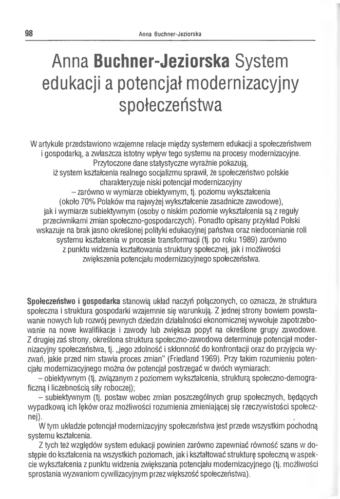 Anna Buchner-Jeziorska System edukacji a potencjał