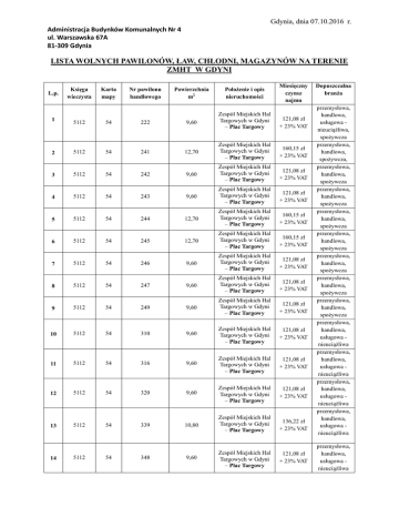 lista wolnych pawilonów, ław, chłodni, magazynów na terenie zmht