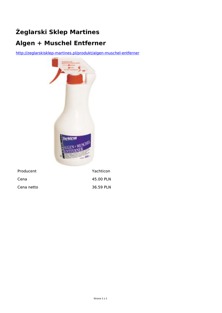 Żeglarski Sklep Martines Algen + Muschel Entferner http://zeglarskisklep-martines.pl/produkt/algen-muschel-entferner Producent Yachticon Cena 45.00 PLN Cena netto 36.59 PLN Strona 1 z 1