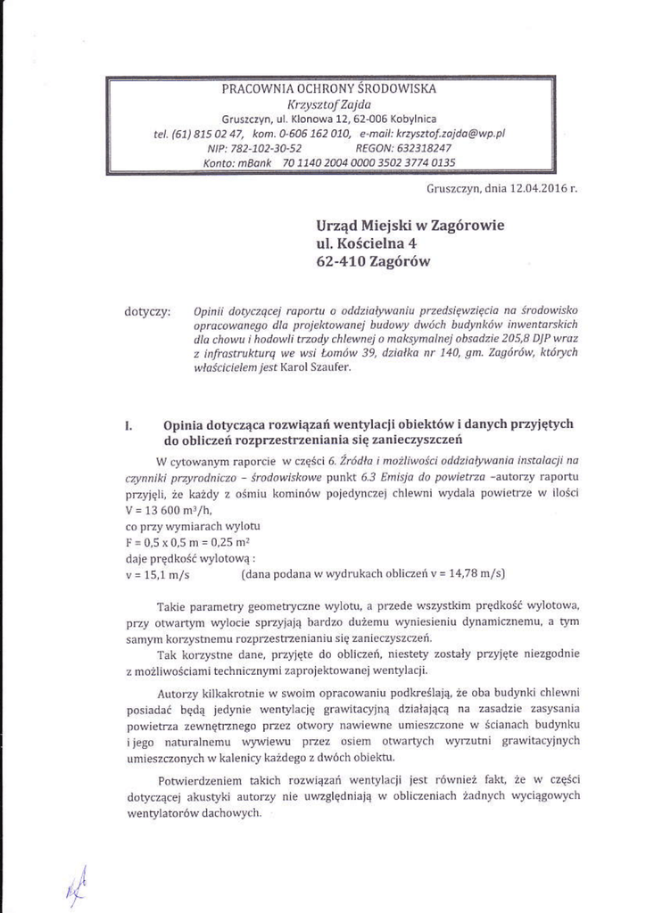 Opinia z dnia 12.04.2016 r. dot. rozwiązań wentylacji