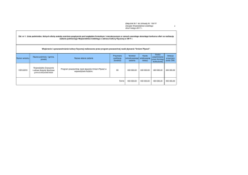 Załącznik Nr 1 do Uchwały Nr 133/17 Zarządu Województwa Łódzkiego dnia 8 lutego 2017 r. z Zał. nr 1. Lista podmiotów, których oferty zostały ocenione pozytywnie pod względem formalnym i merytorycznym w ramach czwartego otwartego konkursu ofert na realizację zadania publicznego Województwa Łódzkiego z zakresu kultury fizycznej w 2017 r. Wspieranie i upowszechnianie kultury fizycznej realizowane przez program powszechnej nauki pływania "Umiem Pływać". Numer wniosku 1/SIV/2016 Nazwa podmiotu / (gmina, powiat) Wojewódzkie Zrzeszenie Ludowe Zespoły Sportowe gmina:Łódź/powiat:łódzki Nazwa własna zadania Przyznana punktacja (średnia) Program powszechnej nauki pływania Umiem Pływać w województwie łódzkim. 65 Suma: Kwota Wartość Kwota zaopiniowana wnioskowanego wniskowanej przez Komisję zadania dotacji konkursową Dotacja przyznana przez ZWŁ 400 000,00 400 000,00 400 000,00 400 000,00 400 000,00 400 000,00 400 000,00 400 000,00