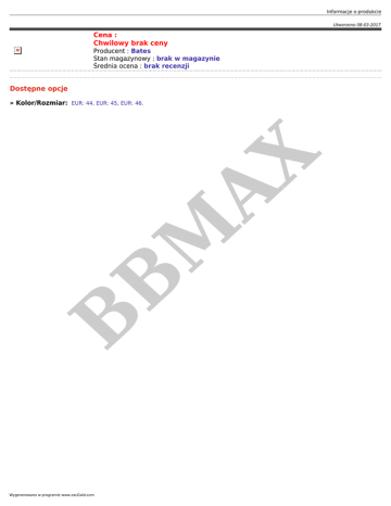 Informacje o produkcie Utworzono 08-03-2017 Cena : Chwilowy brak ceny Producent : Bates Stan magazynowy : brak w magazynie Średnia ocena : brak recenzji Dostępne opcje B B M AX » Kolor/Rozmiar: EUR: 44, EUR: 45, EUR: 46. Wygenerowano w programie www.oscGold.com