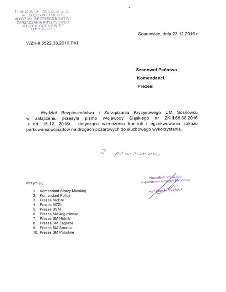 w załączeniu przesyła pismo Wojewody Sląskiego nr ZKll1.68.68.2016