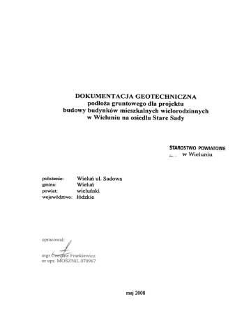 DOKUMENT ACJA GEOTECHNICZNA pod³o¿a gruntowego dla projektu budowy budynków mieszkalnych wielorodzinnych