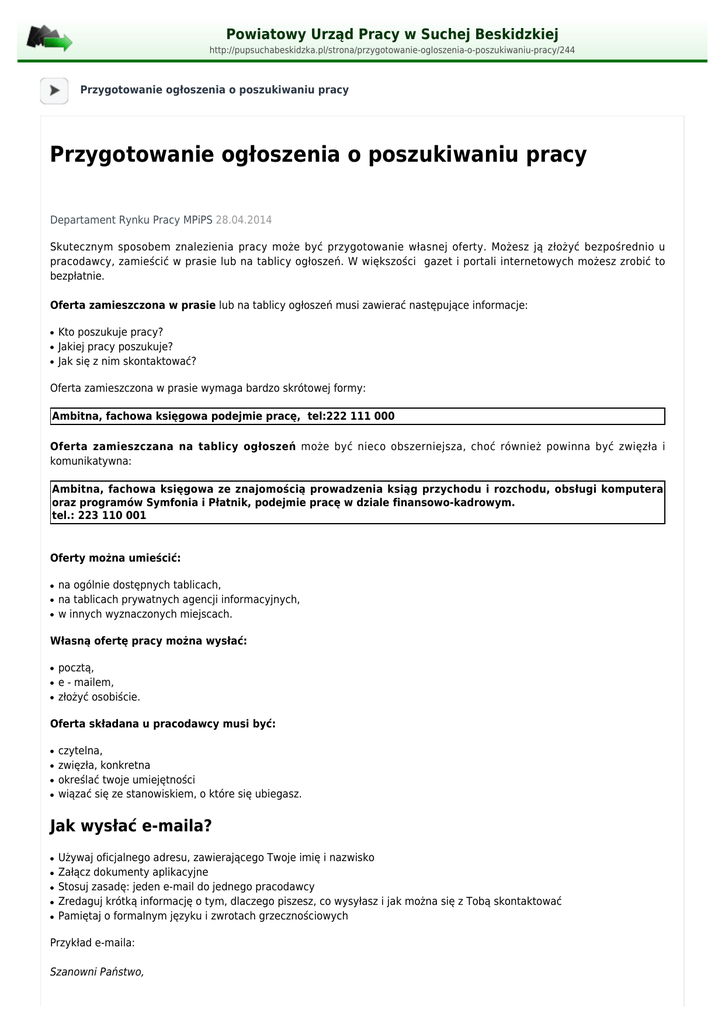 Przygotowanie ogłoszenia o poszukiwaniu pracy
