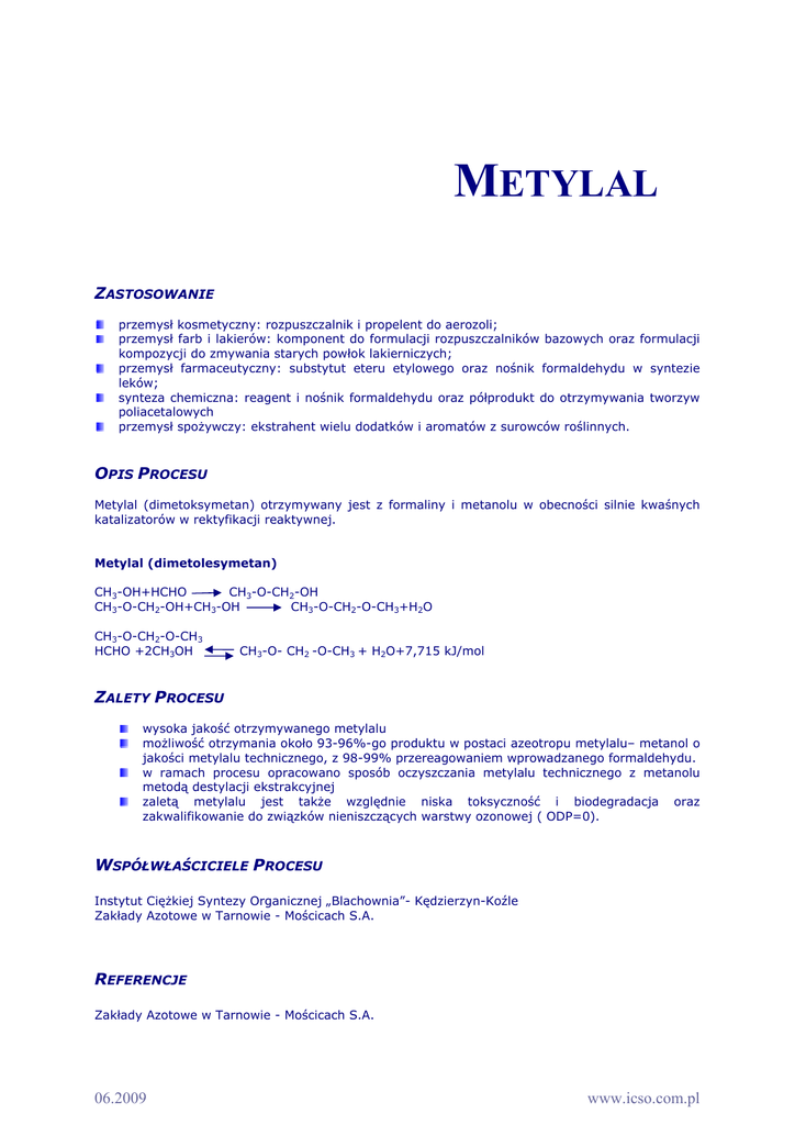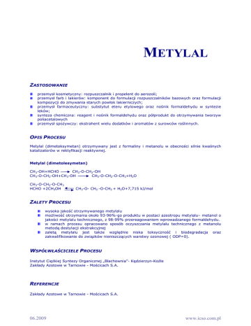 metylal - Instytut Ciężkiej Syntezy Organicznej "Blachownia"