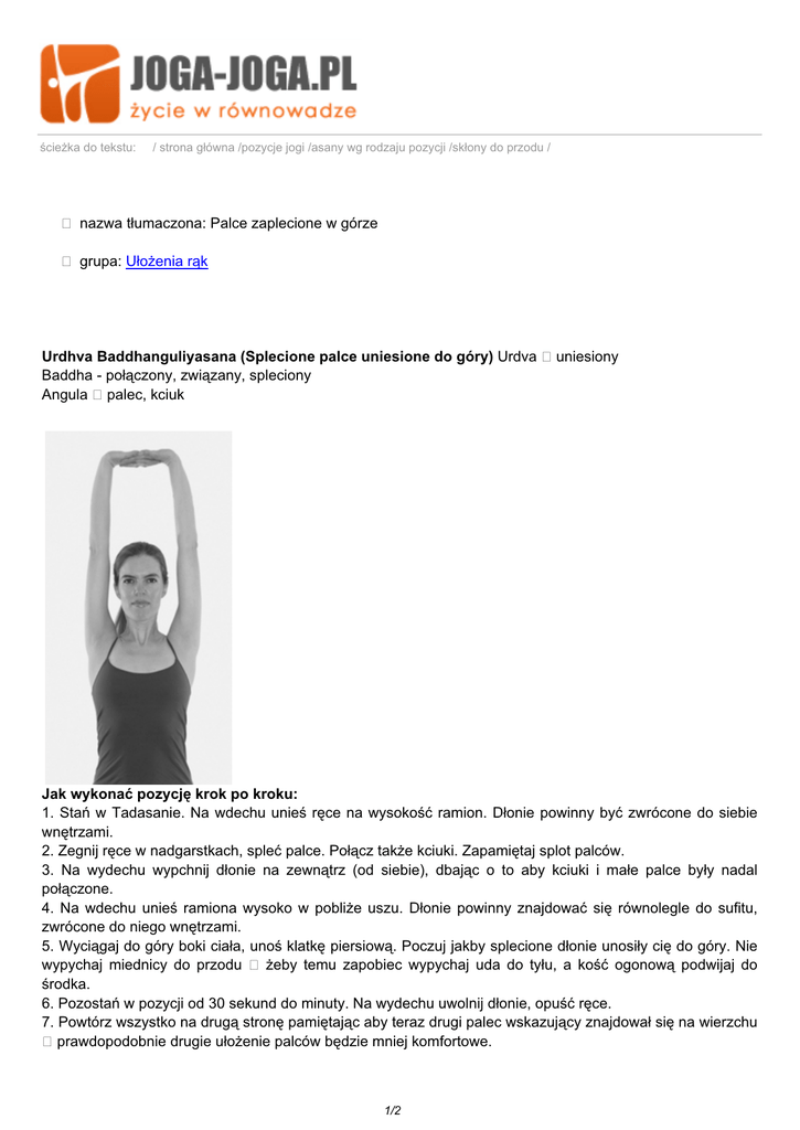 nazwa tłumaczona: Palce zaplecione w górze grupa - Joga