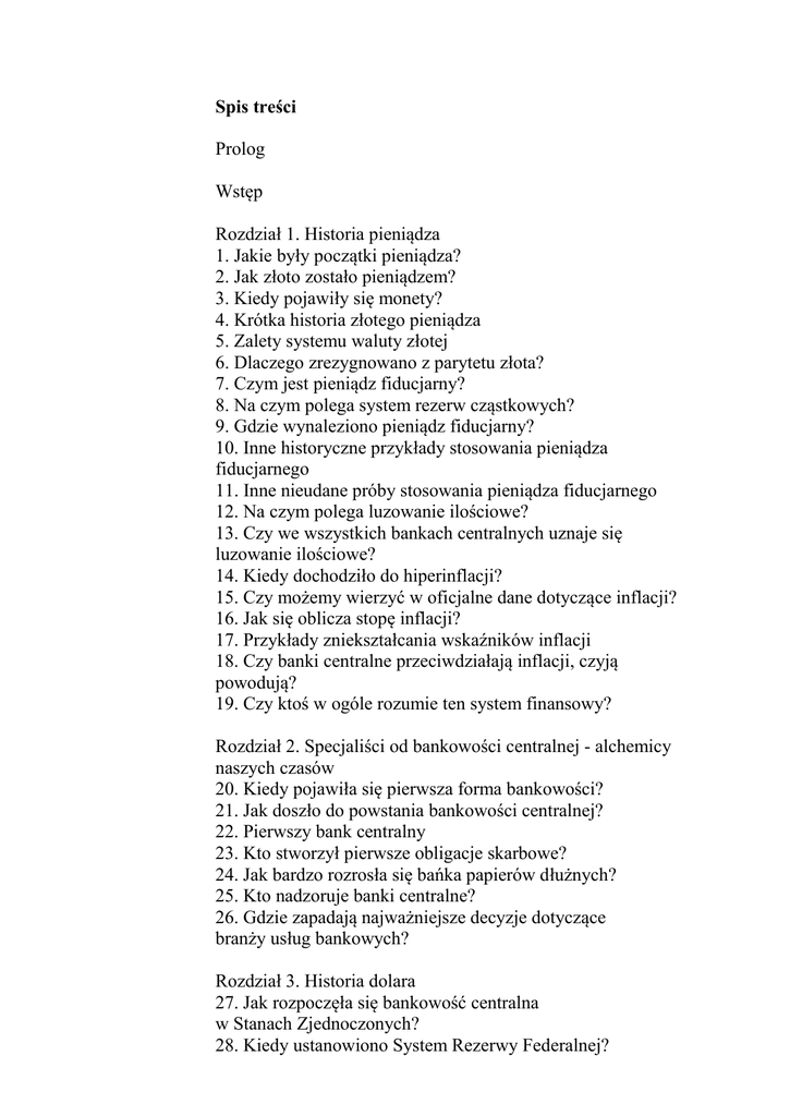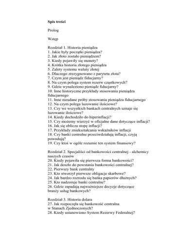 Spis treści Prolog Wstęp Rozdział 1. Historia pieniądza 1