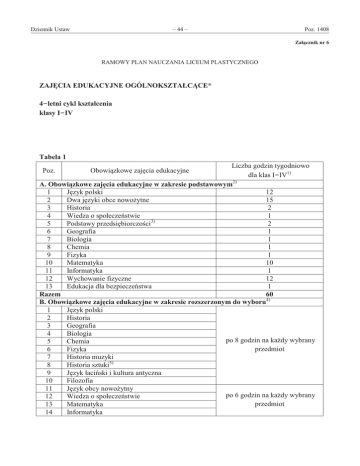 ZAJ CIA EDUKACYJNE OGóLNOKSZTAŕC CE 4ψletni cykl