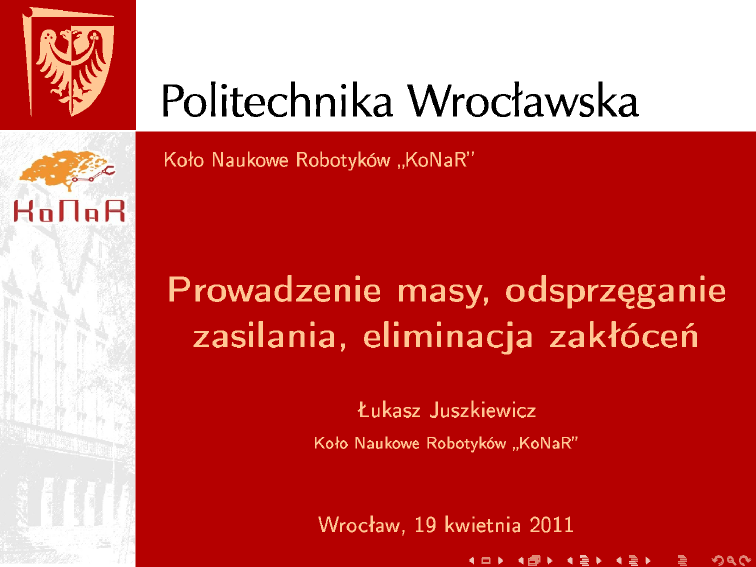 Koªo Naukowe Robotyków KoNaR Plan prezentacji Prowadzenie ±cie»ek masy i zasilania Odsprz¦ganie zasilania Samowzbudzanie si¦ ukªadów Kilka sªów o EMC Podsumowanie Koªo Naukowe Robotyków KoNaR Wst¦p Motto W teorii nie ma ró»nicy mi¦dzy praktyk¡ a teori¡. W praktyce jest. Koªo Naukowe Robotyków KoNaR Prowadzenie masy Teoria a praktyka Idealne poª¡czenia nie istniej¡ Rezystancja ±cie»ek Szkodliwe indukcyjno±ci Koªo Naukowe Robotyków KoNaR Prowadzenie masy Podstawowe zasady cie»ki powinny by¢ odpowiednio szerokie! Nie mieszamy maªych pr¡dów z du»ymi! Kierunek prowadzenia masy jest wa»ny Punkt wspólny i szyna masy Punkty lokalne masy Pola masy Koªo Naukowe Robotyków KoNaR Prowadzenie masy Przykªad Koªo Naukowe Robotyków KoNaR Prowadzenie masy Na styku dwóch ±wiatów Oddzielamy mas¦ cyfrow¡ i analogow¡ Wªa±ciwy ukªad elementów i pól masy ¡czenie w jednym punkcie Nie zmuszamy sygnaªów analogowych do dªugich podró»y Trzeci ±wiat Koªo Naukowe Robotyków KoNaR Odsprz¦ganie zasilania Teoria a praktyka Wpªyw rezystancji ±cie»ek Nie ma idealnych stabilizatorów Wpªyw rezystancji wewn¦trznej Pr¡d pobierany przez ukªady CMOS Ukªady impulsowe Koªo Naukowe Robotyków KoNaR Odsprz¦ganie zasilania Uwalniamy zasilanie od zakªóce« Szerokie ±cie»ki! Dajmy stablilizatorom szans¦ Kondensator twoim przyjacielem Kondensatory chodz¡ parami Ferrytowa bi»uteria Koªo Naukowe Robotyków KoNaR Odsprz¦ganie zasilania W moim ukªadzie nie ma takich cz¦stotliwo±ci... Nie±miertelny Pan Fourier Sygnaªy zegarowe Lepsze wrogiem dobrego Niepozorne elementy Koªo Naukowe Robotyków KoNaR Samowzbudzanie si¦ ukªadów Ale ja nie chciaªem generatora! Znów lepsze wrogiem dobrego Stabilno±¢, czyli co ma Nyquist do Bodego Pomiar zaburza ukªad Nie wyrzucaj starego radia Koªo Naukowe Robotyków KoNaR Kilka sªów o EMC ródªa zakªóce« Pola elektryczne Pola magnetyczne Pola elektromagnetyczne Koªo Naukowe Robotyków KoNaR Kilka sªów o EMC Zakªócenia od pól elektrycznych Pojemno±ci paso»ytnicze Znów wywoªujemy Fouriera z lasu Du»e rezystancje nie zawsze s¡ fajne Ekran pomaga, ale trzeba go uziemi¢! Koªo Naukowe Robotyków KoNaR Kilka sªów o EMC Zakªócenia od pól magnetycznych Powtórka z zyki Minimalizujemy pola p¦tli Ekranowanie pancerzem czoªgu Kilka sªów o transformatorach Koªo Naukowe Robotyków KoNaR Kilka sªów o EMC Zakªócenia od pól elektromagnetycznych Wszechobecne pola EM Kable jako anteny Ekranowanie jak najbardziej wskazane Koªo Naukowe Robotyków KoNaR Podsumowanie Dzi¦kuj¦ za uwag¦.