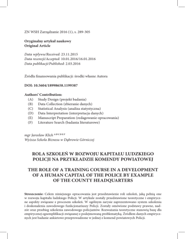 rola szkoleń w rozwoju kapitału ludzkiego policji na przykładzie