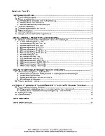 Tom 5/1 Projekt wykonawczy - projekt branŜy hydrotechnicznej.