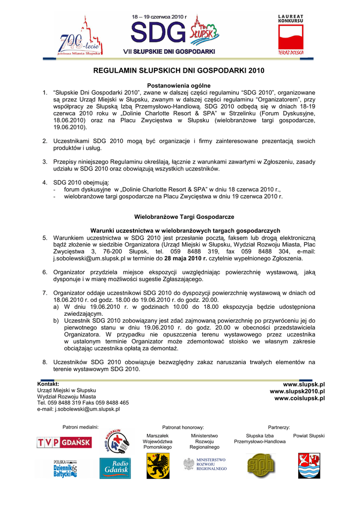 REGULAMIN SŁUPSKICH DNI GOSPODARKI 2010