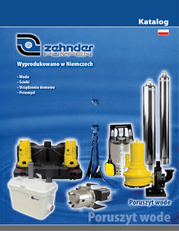 Katalog Wyprodukowano w Niemczech • Woda • Ścieki • Urządzenia domowe • Przemysł Poruszyt wode y 2 Strona 24-25 Strona 28-29 Miniboy Miniboy - podwójny Boy Boy - podwójny urządzenie przepompowywujące do ścieków i fekaliów Strona 35 (również do wbudowania w ziemi) separator tłuszczów z PE NG-1-10 utylizacja odpadów Strona 26-27 Strona 30-33 Strona 19 urządzenie urządzenie urządzenie rozdrabniającoprzepompowywujące do przepompowywujące przepompowywujące ścieków i fekaliów do wody brudnej - podłogowe do ścieków i fekaliów W80 - z urządzeniem tnącym W80 - podwójny Miniboy SEN WUZ100 UFB200 Miniboy-podwójny WUZ100 - podwójny SEN Strona 23 Microboy - do ograniczonego stosowania - urządzenie przepompowywujące Strona 20-22 SWH100 SWH500 - nadpodłogowe - urządzenie przepompowywujące do wody brudnej poziom cofki pompa zatapialna do wody brudnej Strona 4-6 FSP330 (pompa drenażowa) ZPK30/35/40 - tworzywo sztuczne - Strona 7 E-ZW 50/65/80 E-ZWM 65 - stal szlachetna - pompa zatapialna do wody brudnej Strona 44-47 EP-EPA MP-HMP - stal szlachetna - pompa urządzenia hydrofor Strona 50-53 TM UWP pompa głębinowa Strona 10-11 ZFS70 pompa zatapialna do ścieków z mechanizmem tnącym Strona 12-13 ZF80 ZF100 pompa zatapialna do ścieków Strona 36-40 FPS-KE FPS-KD - tworzywo sztuczne - stacja pompowa kanał lub zbiorczy przewód tłoczny do osadnika Wysokie kompetencje w technice pomp w sektorze komercyjnym oraz w usługach instalacyjno-budowlanych Spis treści w skrócie SPIS TREŚCI Oznaczenie Pompy zatapialne do wody brudnej do wody brudnej bez fekaliów Typ Tworzywo sztucz. i stal nierdz. z mechanizmem tnącym Tworzywo sztucz. i stal nierdz. Tworzywo sztucz. i stal nierdz. Stal nierdzewna Żeliwo szare Pompy zatapialne do wody brudnej z mechanizmem tnącym Strona ZPK SWP FSP ZM / TDP E-ZW ZPG 50 / ZPG 70 4 4 5 6 7 8 ZFS 70 ZF 80 ZF 100 wyposażenie 10 12 13 14 Urządzenia do włączania pomp zatapialnych DSG, ZPS 16 Pompy budowlane E-BW/D 18 UFB SWH 100 ZKH 05 19 20 21 SWH 500 22 MICROBOY 23 Miniboy Miniboy SEN Boy W 80 WUZ 100 wyposażenie / RSK 24 26 28 30 32 34 owalne 35 z żeliwa szarego do wody brudnej zawierającej fekalia Urządz. do usuwania ścieków do ścieków bez fakaliów z płytą do cięcia włókien z płytą do cięcia włókien zbiornik podpodłogowy zbiornik nadpodłogowy pompa do odprowadzania kondensatu NOWOŚĆ zbiornik nadpodłogowy Urządzenia do usuwania ścieków do użytku w domach prywatnych Urządzenia do usuwania ścieków do ścieków zawierających fekalia z wirnikiem w wolnym strumieniu z mechanizmem tnącym z wirnikiem w wolnym strumieniu z wirnikiem w wolnym strumieniu z płytą do cięcia włókien Separatory kuszczów Stacje pomp (kompletne) – z tworzywa sztucznego wersja podstawowa pojedyncza NOWOŚĆ Komfortowa wersja pojedyncza/podwójna ze zintegrowanym urządzeniem do usuwania scieków Baza FPS FPS-K E/D FPS-H 36 37 39 Universalny odsysacz szlamu pompa membranowa USS 41 Pompy domowe i ogrodowe Pompy obiegowe Hydrofory do wody pitnej Pompy ogrod./automatyczne pompy wodne Hydrofory EP / MP EPA / HMP WX / HAE HWX / HWX-E wyposażenie RWNA 44 45 46 47 48 49 Pompy głębinowe TM UWP wyposażenie 50 53 53 Urządzenia do podwyższania ciśnienia ZP DEA 54 Pompy filtracyjne Małe pompy obiegowe UP 54 Urządzenie do deszczówki Zbiorniki z tworzywa sztucznego 55 Wykaz skrótów, cennik 55 Która pompa do jakiego celu? 56 Dystrybutorzy 57 Notatki 58 3 POMPY ZATAPIALNE DO WODY BRUDNEJ Z TWORZYWA SZTUCZNEGO Grupa towarowa A/B ZPK bez mechanizmu tnącego / SWP z mechanizmem tnącym WYKONANIE: ZPK 30 A • pompa zatapialna do wody brudnej w obudowie z odpornego na korozję i uderzenia tworzywa sztucznego i wysokogatunkowej stali nierdzewnej • IP 68 – całkowicie zatapialna • uzwojenie silnika zabezpieczone termicznie • uszczelnienie pierścieniem ślizgowym i dodatkowym pierścieniem uszczeln. wał • poziome wyjście ciśnienia 1 1/4” gwint zewnętrzny • 10 m kabel podłączeniowy z wtyczką z uziemieniem • wykonanie A z zamontowanym wyłącznikiem pływakowym • SWP 40 dodatkowo z mechanizmem tnącym (ze specjalnego stopu) do rozdrabniania liści, małych gałęzi i innych możliwych do pocięcia materiałów, nie dozwolone do tłoczenia ścieków zawierających fekalia SWP 40 A ZASTOSOWANIE: • • • • wypompowywanie czystej i brudnej wody z dołów i studzienek drenażowych, odwadnianie piwnic itp. pompa przenośna do odwadniania odprowadzanie ścieków domowych bez fekaliów z pryszniców, z pralek, ze zlewów itd. S-ZPK – wykonanie specjalne do mediów agresywnych DANE TECHNICZNE: Typ Nr art. P1 [W] P2 [W] U [V] IN [A] n [min-1] Qmax [m3/h] Hmax Wielk. grudki Ciężar Grupa [m] [mm] [kg] towar. ZPK 30 ZPK 30 A S-ZPK 30 S-ZPK 30 A ZPK 35 ZPK 35 A S-ZPK 35 S-ZPK 35 A ZPK 40 ZPK 40 A SWP 40 A 26300 26301 26355 26354 26350 26351 26356 26359 26400 26401 15041 300 300 300 300 850 850 850 850 850 850 850 130 130 130 130 430 430 430 430 430 430 430 230 230 230 230 230 230 230 230 230 230 230 1,3 1,3 1,3 1,3 3,7 3,7 3,7 3,7 3,7 3,7 3,7 2800 2800 2800 2800 2800 2800 2800 2800 2800 2800 2800 7,0 7,0 7,0 7,0 11,0 11,0 11,0 11,0 10,0 10,0 12,0 7,5 7,5 7,5 7,5 11,0 11,0 11,0 11,0 10,0 10,0 10,0 Temperatura pracy: 40°C (krótkotrwale 90°C) Sprawdzone przez TÜV WYMIARY: WYPOSAŻENIE: Typ Średnica A [mm] ZPK 30 ZPK 35 ZPK 40 SWP 40 150 150 150 160 Wysokość całkowita B [mm] 270 300 345 345 10 10 10 10 10 10 10 10 30 30 nóż Oznaczenie Nr artykułu Klapa zwrotna 1 1/4” Zasuwa odcinająca 1 1/4” 50003 115032 4,7 4,7 4,7 4,7 6,3 6,3 6,3 6,3 6,5 6,5 6,8 A A B B A A B B A A A Grupa towar. B B CHARAKTERYSTYKI: włączone możliwość ustawienia wyłączone ZAKRES DOSTAWY: • ZPK/SWP gotowa do podłączenia, łącznie z kolanem przyłącznym węża 90° (ZPK 30: DN 25, ZPK 35/40 i SWP: DN 32) • 10 m przewód zasilający 4 POMPY ZATAPIALNE DO WODY BRUDNEJ Z TWORZYWA SZTUCZNEGO Grupa towarowa A Pompa odsysaj