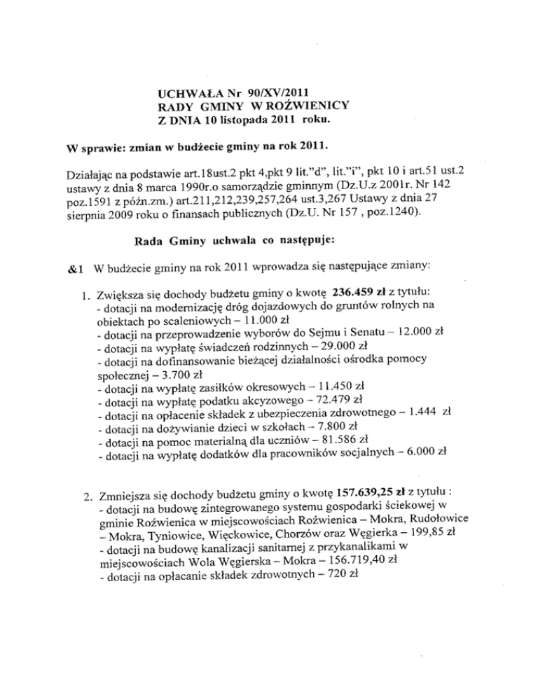 UCHWAŁA NR 90/XV/2011 RADY GMINY W ROŹWIENICY z dnia