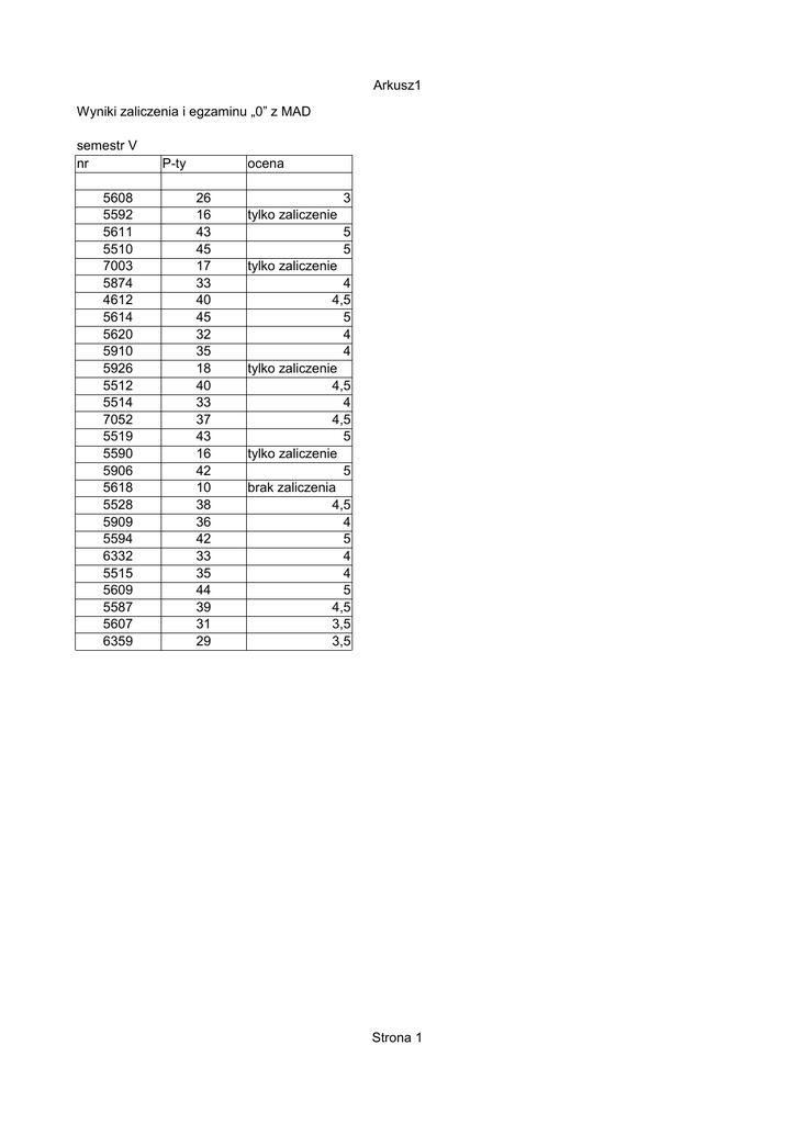 Arkusz1 Strona 1 Wyniki zaliczenia i egzaminu „0” z MAD semestr V