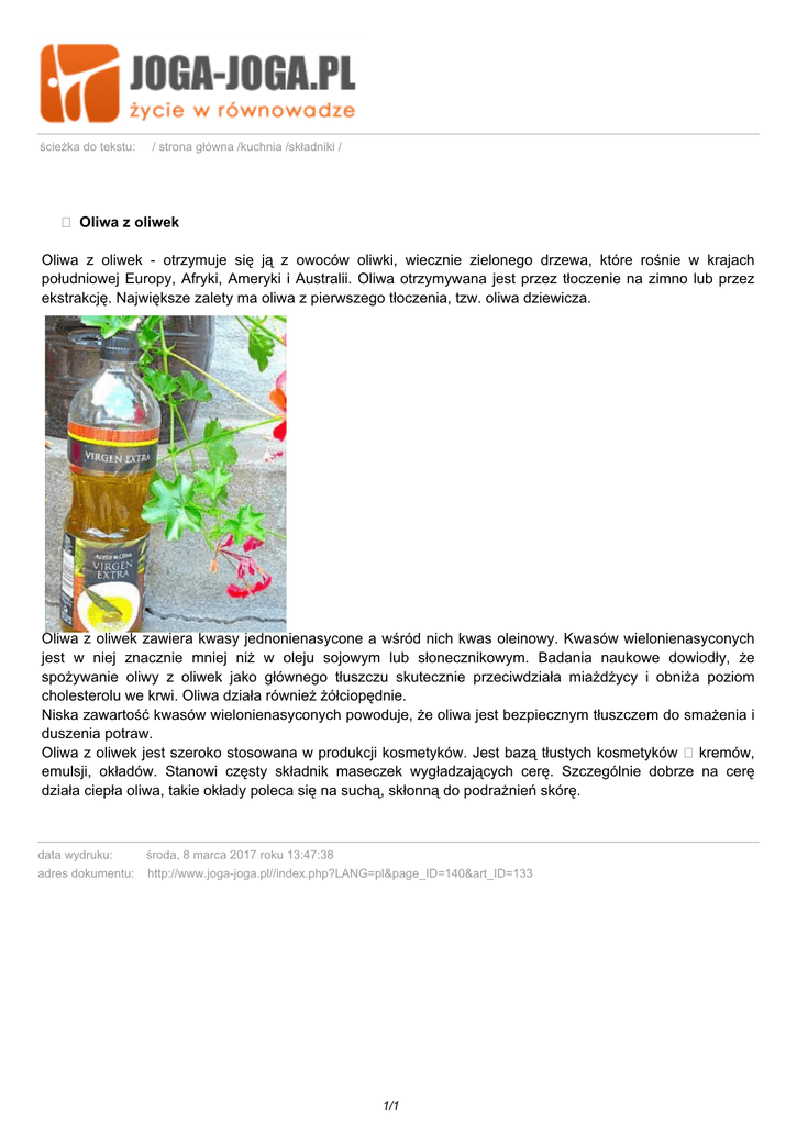 Oliwa z oliwek Oliwa z oliwek - otrzymuje się ją z - Joga-Joga