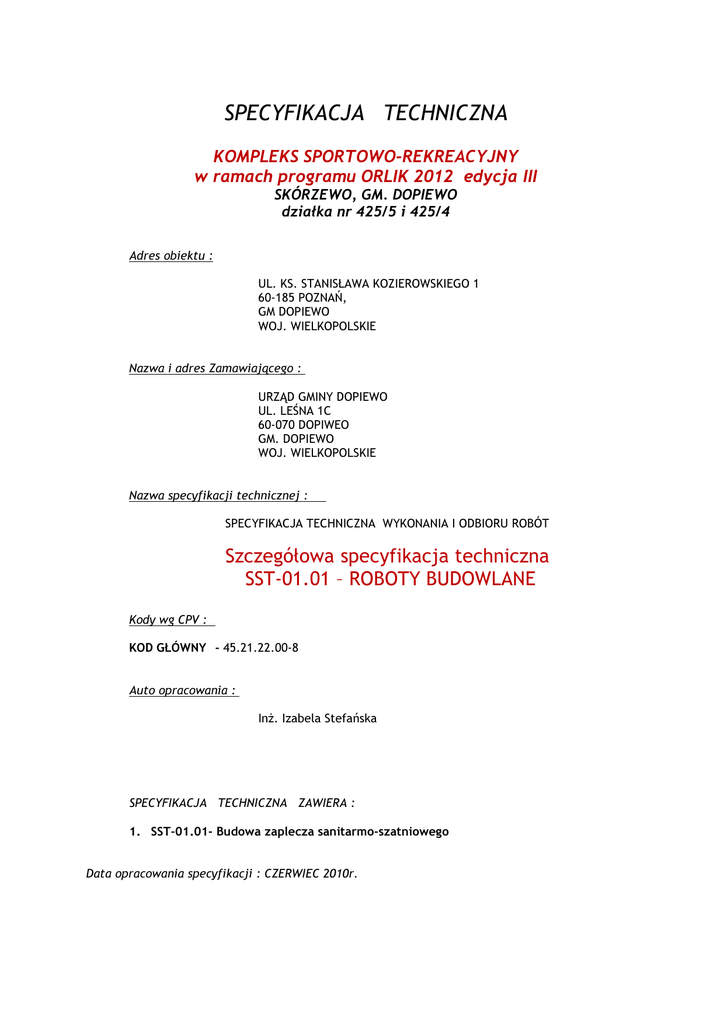 sportowo-rekreacyjnego w ramach programu ORLIK 2010 edycja III, gmina Dopiewo, ul. Ks. Stanisława