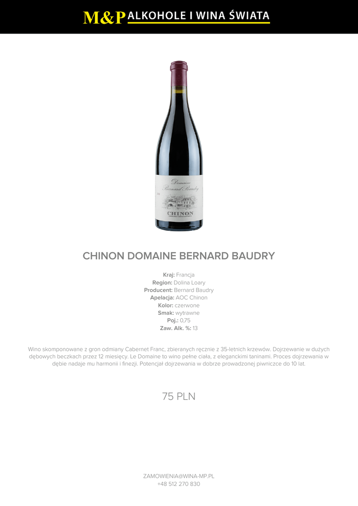 CHINON DOMAINE BERNARD BAUDRY 75 PLN