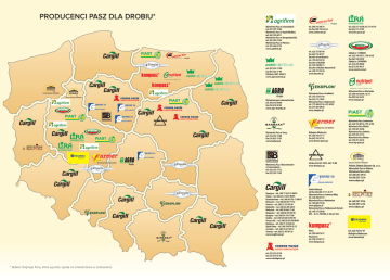 PRODUCENCI PASZ DLA DROBIU* Wytwórnia Pasz w Szamotułach tel. (61) 293 19 84 Wytwórnia Pasz w Topoli Wielkiej tel. (62) 593 00 11 Wytwórnia Pasz w Margońskiej Wsi tel. (67) 284 72 64 Wytwórnia Pasz w Płośnicy tel. (23) 696 63 23 www.agrifirm.pl tel. (87) 424 17 60 fax (87) 424 17 99 Infolinia: 0801 304811 www.agrocentrum.pl Wytwórnia pasz i koncentratów tel. (44) 616 60 00 fax (44) 616 58 96 www.agro-kocieba.pl Wytwórnia Pasz w Turzy tel. (14) 653 13 00 fax (14) 653 13 03 www.barbara.pl Wytwórnia Pasz i Koncentratów w Inowrocławiu tel. (52) 353 77 12 fax (52) 352 74 82 Ropczyce – tel. (48) 17 222 97 00/01 Sierpc – tel. (48) 24 2 75 87 00/01 Krzemieniewo – tel. (48) 65 536 11 00/01 Brzozowo – tel. (48) 56 667 11 42 Świecie – tel. (48) 52 331 03 00 Dobrzelin – tel. (48) 24 285 28 35 Białystok – tel. (48) 85 663 72 62 Bieganów – tel. (48) 68 391 04 06 Krzepice – tel. (48) 34 310 71 00 Siedlce – tel. (48) 25 640 23 95/96 Pruszcz Gd. – tel. (48) 58 692 96 00/01 Skokowa – tel. (48) 71 312 66 65 Ujazd Dolny – tel. (48) 76 874 03 12 Jarosław – tel. (48) 16 621 40 51 Tworóg – tel. (48) 32 381 81 30 www.cargill.com.pl tel. (23) 675 03 30 fax (23) 675 03 63 www.cedrobpasze.pl * Wykaz obejmuje firmy, które wyraziły zgodę na umieszczenie w zestawieniu tel. (89) 761 60 19 tel./fax (89) 761 62 63 www.contractus.pl tel. (65) 517 43 00, 65 511 47 01 fax (65) 517 43 02 www.lira-pasze.pl tel. (62) 753 87 00 fax (62) 753 87 07 Dossche o/Sandomierz tel. (15) 832 22 58 Dossche o/Rychliki tel. (55) 248 84 31 Dossche o/Maków Mazowiecki tel. (29) 717 32 30 www.dossche.pl Zakład nr 1 CHRZAN tel. (62) 740 36 37, 740 36 38 fax (62) 740 30 38 Zakład nr 2 KUNOWO tel. (61) 295 00 00 fax (61) 295 00 75 www.neorol.com.pl Wytwórnia Pasz w Grabkach tel. (41) 354 51 69 fax (41) 312 10 89 Wytwórnia Pasz w Baborowie tel. (77) 406 23 56, 472 40 09 fax (77) 403 68 30 www.ekoplon.pl Biskupice Ołoboczne tel. (62) 762 11 11 fax (62) 762 47 32 www.farmer-pasze.pl tel/fax (23) 661 18 93, 661 19 88 www.fermpasz.pl Golub-Dobrzyń tel/fax (56) 683 51 11 do 17 Wytwórnia Pasz w Janowcu Wlkp. tel. (52) 302 31 53 Wytwórnia Pasz w Radominie tel. (56) 683 75 68 www.golpasz.pl Wytwórnia Pasz w Podkonicach Dużych tel. (44) 713 20 08 GPS – N: 51.700 989, E: 20.227 245 Iława tel. (89) 648 74 41 Mszanowo tel. (56) 474 07 91 www.kompasz.pl Wytwórnia Pasz w Olsztynku tel. (89) 544 36 09, 10, 11 fax (89) 544 36 29 www.nutripol.pl Wytwórnia Pasz Lewkowiec tel. (62) 736 02 34, 735 44 30 Wytwórnia Pasz Płońsk tel. (23) 661 34 80 Wytwórnia Pasz Gołańcz tel. (67) 261 51 16 Wytwórnia Pasz Oleśno tel. (55) 231 42 45 www.wp-piast.pl Polskie Zakłady Zbożowe Sp. z o.o. Mieszalnia Pasz w Wałczu Wytwórnia Pasz w Pile tel. (68) 387 39 56 fax (68) 387 52 56 www.solpasz.pl tel. (68) 387 39 56 fax (68) 387 52 56 www.solpasz.pl tel. (62) 767 67 67 Biskupice Ołoboczne www.tasomix.pl PRODUCENCI PASZ DLA DROBIU (3) Agrifirm Polska Sp. z o.o. ul. B. Chrobrego 52, 64-500 Szamotuły tel. (61) 29 31 970, fax (61) 29 22 369 e-mail: [email protected] www.agrifirm.pl Agrifirm Polska jest częścią Royal Agrifirm Group, międzynarodowego przedsiębiorstwa oferującego kompleksowe rozwiązania dla rynku rolnego, zarówno dla hodowców roślin, jak i zwierząt. Główna siedziba grupy Agrifirm mieści się w Apeldoorn w Holandii, a filie zlokalizowane są w 10 krajach Europy oraz w Chinach. Pasze dla zwierząt produkowane są w 18 zakładach na terenie Holandii, Niemiec, Belgii, Polski oraz Węgier. Płośnica Margońska Wieś Szamotuły Topola Wielka W Agrifirm Polska specjalizujemy się w produkcji efektywnych programów żywienia zwierząt, głównie dla drobiu, trzody chlewnej oraz bydła. Dysponujemy nowoczesnymi wytwórniami zlokalizowanymi w Szamotułach, Topoli Wielkiej, Margońskiej Wsi oraz Płośnicy. Proces produkcyjny prowadzony jest zgodnie z międzynarodowymi standardami ISO, HACCP oraz GMP+B1, a każda pasza poddawana jest szczegółowej kontroli jakości. Nasze produkty dostarczamy bezpośrednio na fermy hodowlane jak i za pośrednictwem sieci dealerów. Misją Agrifirm Polska jest kreowanie najwyższych wartości dla klientów. Robimy to poprzez zrównoważone wytwarzanie efektywnych koncepcji żywieniowych, dzięki którym hodowcy osiągają optymalne rezultaty. W tym procesie klient jest naszym głównym źródłem inspiracji. Poprzez innowacje, nieustanny rozwój oraz skupianie się na wynikach, możemy zaoferować wysokiej jakości produkty i usługi dla polskich hodowców. Infolinia 801 304 811 www.agrocentrum.pl AGROCENTRUM Sp. z o.o. 18-500 Kolno, ul. Kolejowa 1 Wytwórnia Pasz Kałęczyn 12-200 Pisz, Kałęczyn 8 tel. +48 87 424 17 60, e-mail: [email protected] Wytwórnia Pasz Grajewo 19-203 Grajewo, ul. Elewatorska 5 tel. +48 87 272 39 43, e-mail: [email protected] Pisz Grajewo Kolno W ofercie posiadamy mieszanki pełnoporcjowe, koncentraty i premiksy dla: 1. Kurcząt brojlerów 4. Indyków brojlerów 2. Kurcząt i niosek reprodukcyjnych 5. Indyków reprodukcyjnych 3. Kur niosek (jaja konsumpcyjne) 6. Drobiu wodnego Programy żywieniowe Agrocentrum dla wyżej wymienionych gatunków drobiu przygotowane są na bazie wieloletnich doświadczeń firmy, współpracy z najlepszymi krajowymi i zagranicznymi specjalistami. Nasze produkty zabezpieczają optymalny wzrost drobiu i osiągnięcie satysfakcjonujących wyników produkcyjnych. Produkcja odbywa się w najnowocześniejszych wytwórniach pasz w Polsce. Wykorzystanie w produkcji najnowszych rozwiązań technologicznych i produkcja w oparciu o System Zarządzania Bezpieczeństwem Żywności wg EN ISO 22000:2005 gwarantuje bezpieczeństwo produktów i ich powtarzalną wysoką jakość. Do dyspozycji naszych klientów są wykwalifikowani doradcy żywieniowi i lekarze weterynarii, których zadaniem jest pomoc klientom w uzyskaniu bardzo dobrych wyników produkcyjnych. ZAPRASZAMY DO WSPÓ ŁPRACY AGRO-Kocięba Bogdan Kocięba ul. 