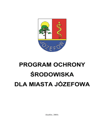 PROGRAM OCHRONY ŚRODOWISKA DLA MIASTA JÓZEFOWA Józefów, 2005r. PROGRAM OCHRONY ŚRODOWISKA DLA MIASTA JÓZEFOWA SPIS TREŚCI I. WPROWADZENIE DO PROGRAMU OCHRONY ŚRODOWISKA MIASTA JÓZEFOWA…………………………………………………………………………………..........6 II. CELE POLITYKI EKOLOGICZNEJ PAŃSTWA I ROZWOJU WOJEWÓDZTWA MAZOWIECKIEGO JAKO WYTYCZNE DLA POLITYKI EKOLOGICZNEJ MIASTA JOZEFOWA..........................................................................................................................7 III. CELE I PRIORYTEWTY OCHRONY ŚRODOWISKA…………………….......………...10 1.0. Ogólna charakterystyka miasta………………………………………………….........……12 2.0. Stan i ocena środowiska w mieście…………………………………………………..........17 2.1. Powietrze atmosferyczne…………………………………………………………..............17 2.1.1. Źródła emisji zanieczyszczeń do powietrza………………………………………........17 2.1.2. Monitoring zanieczyszczeń powietrza………………………………………….........…18 2.1.3. Ocena jakości powietrza…………………………………………………………............18 2.2. Ochrona przyrody........................................................................................................19 2.3. Ochrona powierzchni ziemi………………………………………...........………………...22 2.3.1. Stan czystości gleb i gruntów…………………………………..........…………………..22 2.3.2. Erozja gleb………………………………………………………….........………………..23 2.3.3. Lasy…………………………………………………………………...........………………25 2.4. Gospodarka wodno – ściekowa………………………………….........…………………..26 2.4.1. Zaopatrzenie w wodę…………………………………………………...........…………..27 2.4.2. Emisja ścieków…………………………………………………………………...............27 2.4.2. Ścieki komunalne………………………………………………………………...............28 2.4.3. Ścieki przemysłowe………………………………………………………...............….…29 2.4.4. Wody deszczowe……………………………………………………………...........….…29 2.5. Gospodarka odpadami……………………………………………………….........…….…30 2.6. Stan środowiska akustycznego………………………………………………........……....30 2.6.1. Hałas drogowy..........................................................................................................31 2.7. Pole elektryczne i magnetyczne…………………………………………….........….……34 2.8. Ocena aktualnego poziomu edukacji ekologicznej społeczności miasta…………...…35 2.9. Kierunki działań w kształtowaniu świadomości ekologicznej…………………..........…37 3.0. Cele polityki ekologicznej………………………………………………………..............…37 4.0. Zarządzanie realizacją Programu Ochrony Środowiska w mieście Józefowie…………………………………………………………………………………………..45 4.1. Zasady ogólne………………………………………………………………...................…45 3 PROGRAM OCHRONY ŚRODOWISKA DLA MIASTA JÓZEFOWA 4.2. Strategia stosowania instrumentów polityki ekologicznej…………………................…45 5.0. Organizacja zarządzania ochroną środowiska………………………………...........…...50 5.1. Wprowadzenie……………………………………………………………....................…...50 5.2. Współpraca………………………………………………………………………........….….50 5.2.1. Władze centralne i wojewódzkie…………………………………………….........…..…50 5.2.2. Inspekcja ochrony Środowiska – WIOS w Warszawie Delegatury w Warszawie……...................................................................................................................51 5.2.3. Fundusz Ochrony Środowiska i Gospodarki Wodnej …………………..................…51 5.2.4. Inne jednostki finansujące inwestycje ekologiczne……………………………………54 5.2.5. Międzynarodowe źródła finansowania projektów w dziedzinie ochrony środowiska…......................................................................................................................54 5.2.6. Agencja Restrukturyzacji i Modernizacji Rolnictwa……………………….............…..56 5.2.7. Pozarządowe Organizacje Ekologiczne (MGO’s) i mieszańcy gminy…….........…...56 5.3. Organizacja zarządzania programem……………………………………….........………56 5.3.1. Schemat zarządzania programem………………………………………...........………56 5.4. Monitoring i sprawozdawczość z realizacji Programu Ochrony Środowiska……..........................................................................................................…….57 5.4.1. Rola monitoringu……………………………………………………………................…57 6. Koszty realizacji programu……………………………………………………………...........59 6.1. Struktura finansowa……………………………………………………………….........…..60 Materiały Źródłowe……………………………………………………………….......………...66 4 PROGRAM OCHRONY ŚRODOWISKA DLA MIASTA JÓZEFOWA SPIS RYSUNKÓW I TABEL Rys. 1.