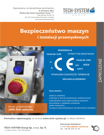 Bezpieczeństwo maszyn i instalacji przemysłowych DYREKTYWA MASZYNOWA