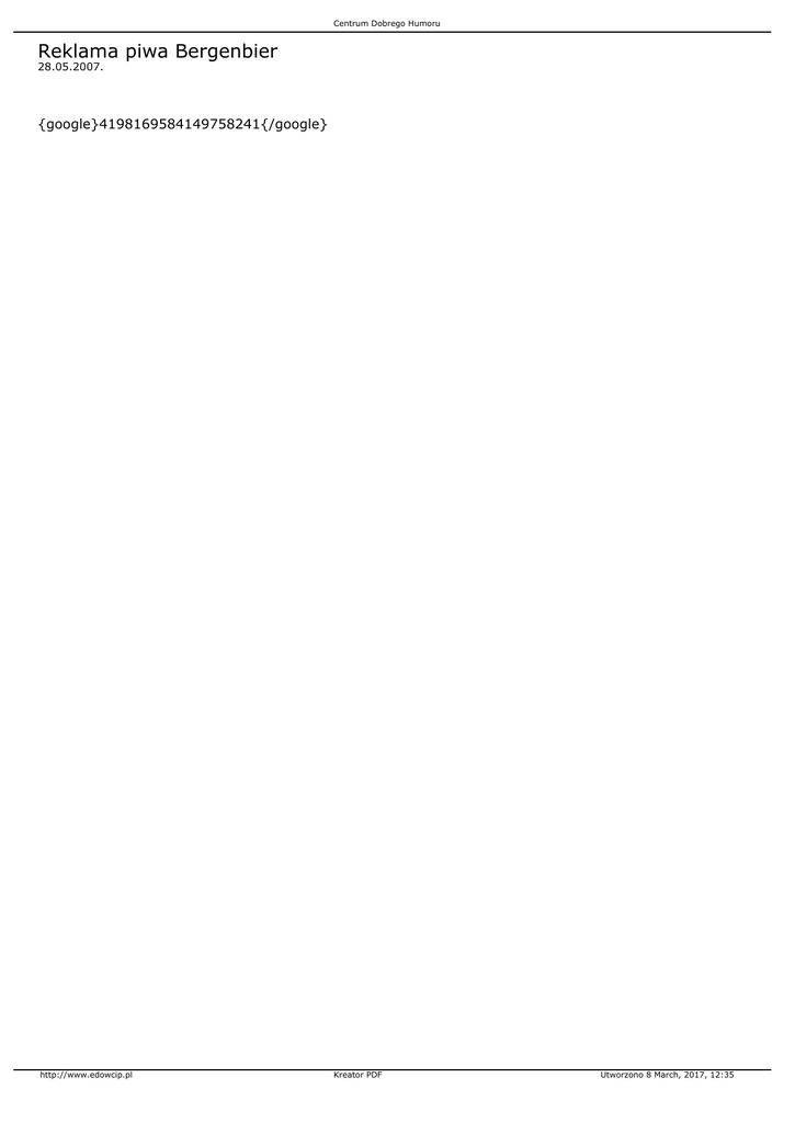 Reklama piwa Bergenbier - Centrum Dobrego Humoru