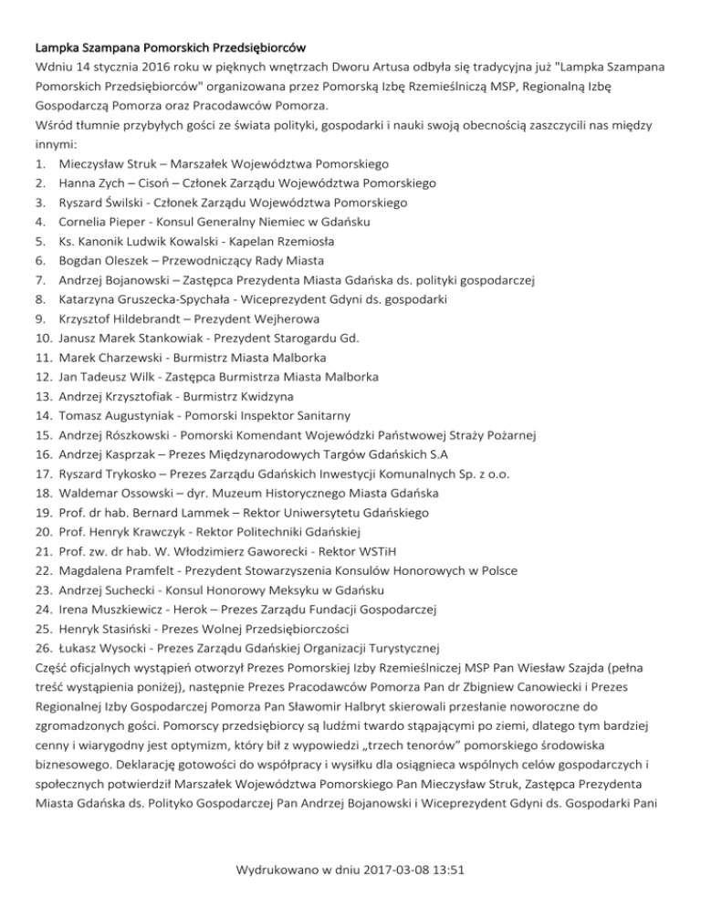 Stało się już tradycją, iż z początkiem roku pomorscy przedsiębiorcy zapraszają na noworoczną lampkę