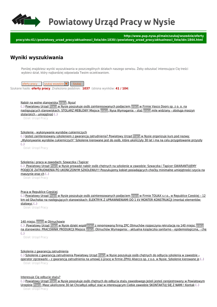 Wyniki wyszukiwania - Powiatowy Urząd Pracy w Nysie
