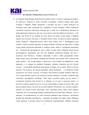 Wymiary świętości Jana Pawła II ks. prof. Andrzej Szostek, MIC