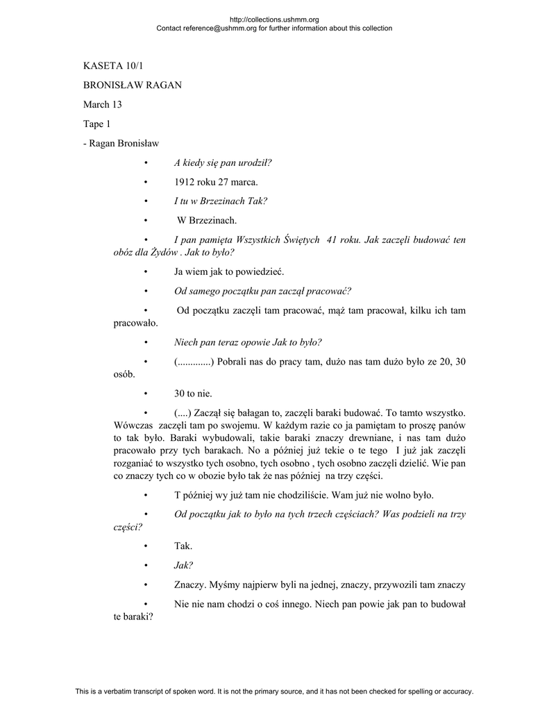 KASETA 10/1 BRONISŁAW RAGAN March 13 Tape 1