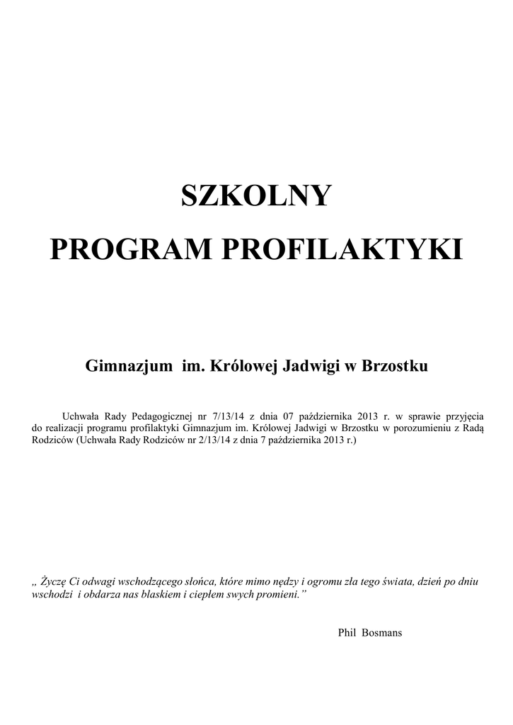 Program Profilaktyki - Gimnazjum im. Królowej Jadwigi w Brzostku