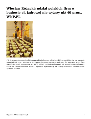 Wiesław Różacki: udział polskich firm w budowie el. jądrowej nie