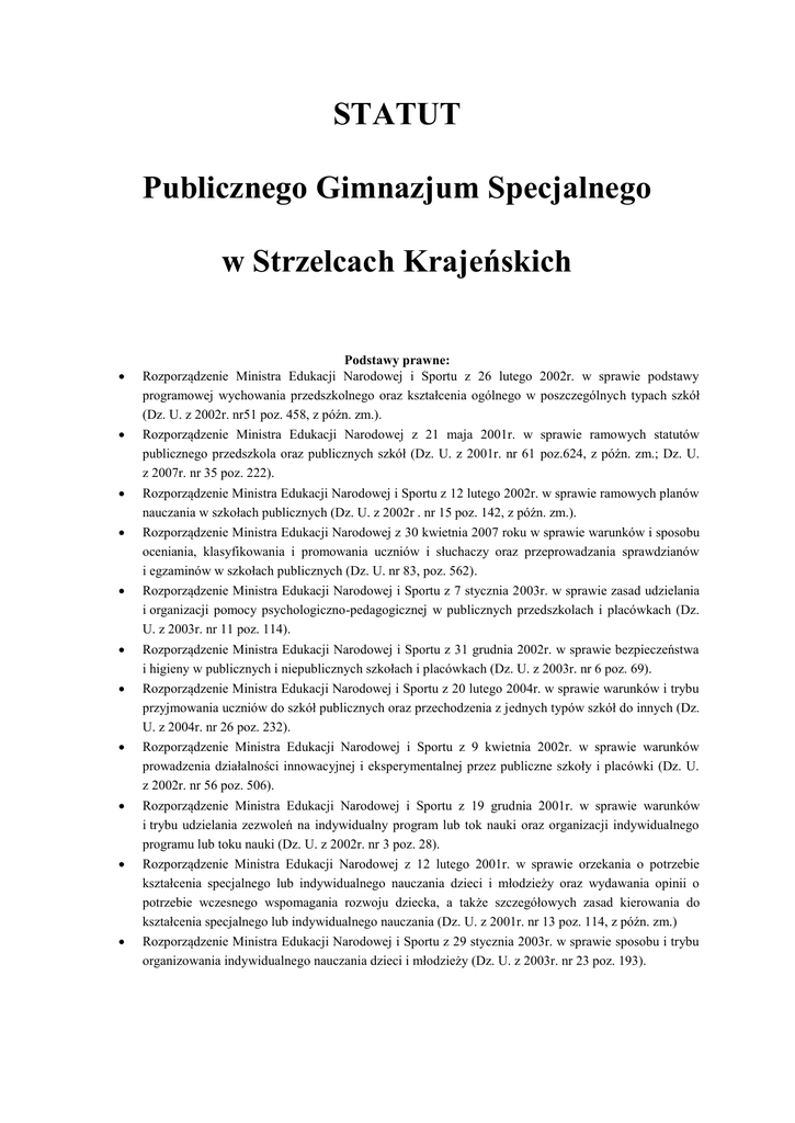 STATUT Publicznego Gimnazjum Specjalnego w Strzelcach
