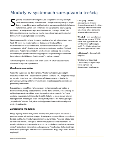ystemy zarządzania treścią służą do zarządzania treścią i to chyba