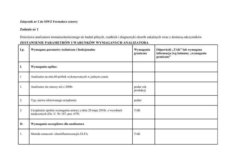 Zadanie nr 1 Dzierżawa analizatora immunochemicznego do badań