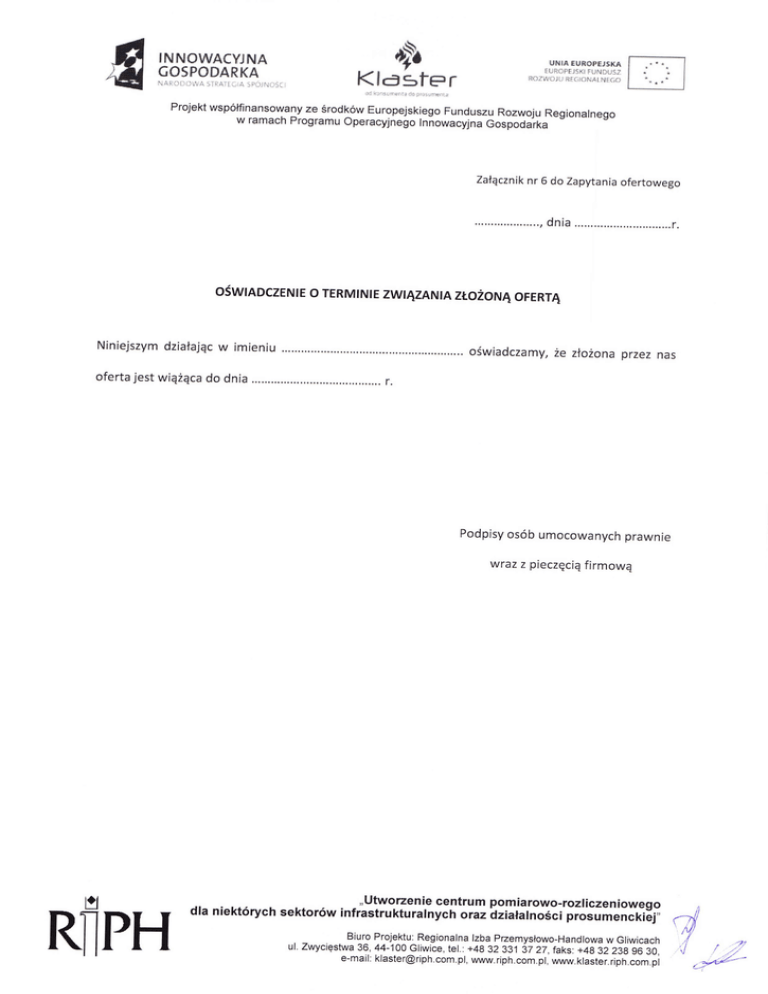 ośWlADczENtE o TERMINIE zWtĄzANlA zŁożoNĄ oFERTĄ