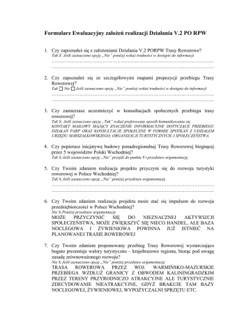 Formularz Ewaluacyjny założeń realizacji Działania V.2 PO