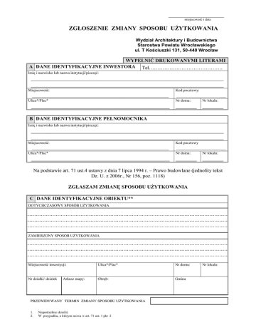 ZGŁOSZENIE ZMIANY SPOSOBU UŻYTKOWANIA