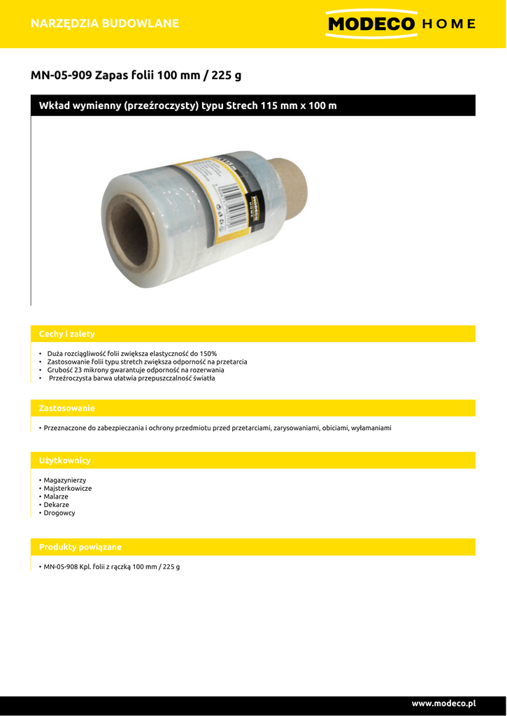NARZĘDZIA BUDOWLANE MN-05-909 Zapas folii 100