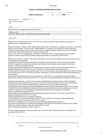 Zawiadomienie od Eagle International Trading Ltd.