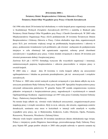 1 28 kwietnia 2004 r. Światowy Dzień Bezpieczeństwa i Ochrony